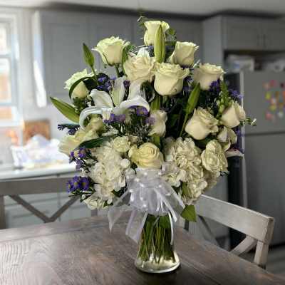 Price: $80.00 Pink Light Vase Arrangement – Roses, Lilies and Gerberas Product Tags: Same-day Delivery
